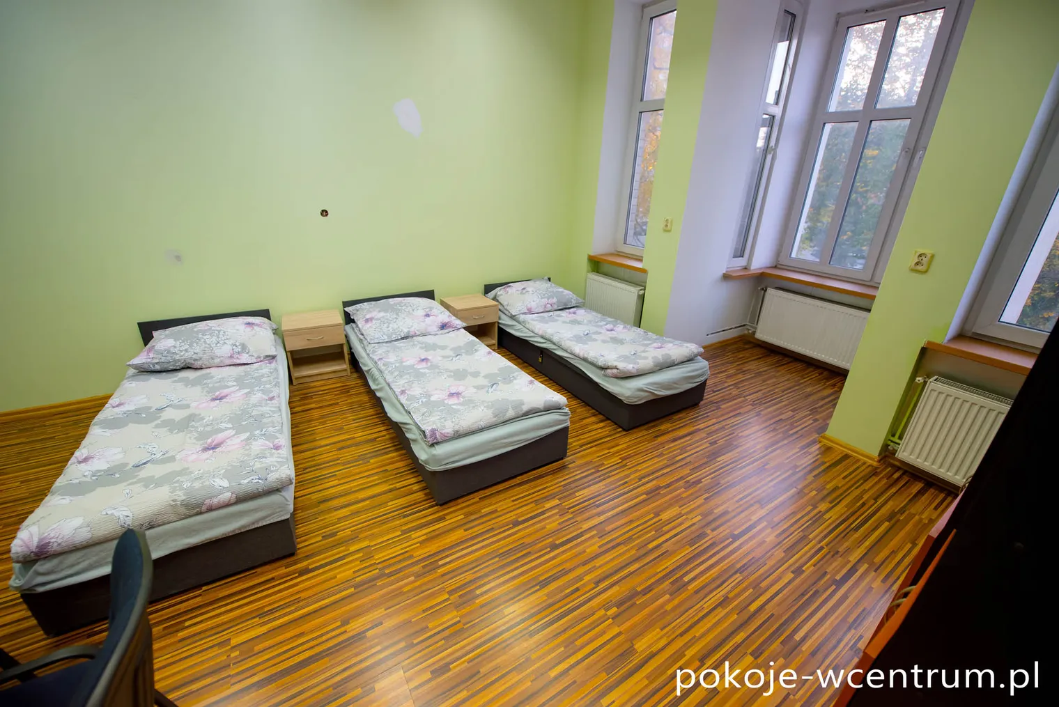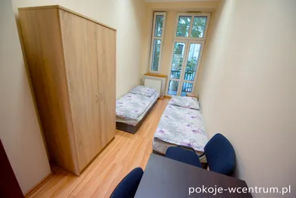 Lokal mieszkalny – znajdujący się w kamienicy na 1 piętrze w dzielnicy Śródmieście. Posiada cztery niezależne pokoje. W układzie 3x - Pokój 3 osobowy oraz 1x - Pokój 2 osobowy. Mieszkanie posiada łazienkę z prysznicem i toaletą oraz w pełni wyposażoną kuchnię. Lokal został przygotowany dla najmu pracowniczego oraz prywatnego. Łącznie lokal może zakwaterować 9-11 osób.