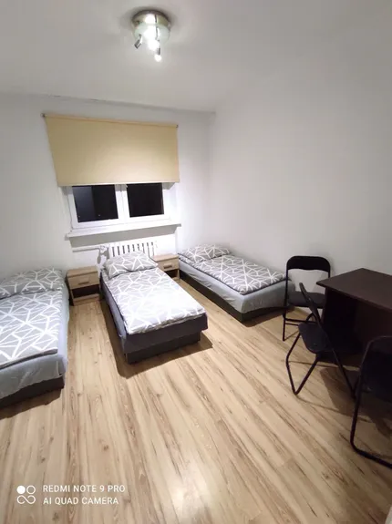 Lokal mieszkalny – znajdujący się w bloku miejskim na parterze w dzielnicy Śródmieście. Posiada dwa niezależne pokoje. Jeden z nich to pokój 3 osobowy, natomiast drugi 5 osobowy. Mieszkanie ma niezależną łazienkę z wanną i toaletą oraz w pełni wyposażoną kuchnię. Lokal został przygotowany dla najmu pracowniczego oraz prywatnego. Łącznie lokal może zakwaterować 8 osób.